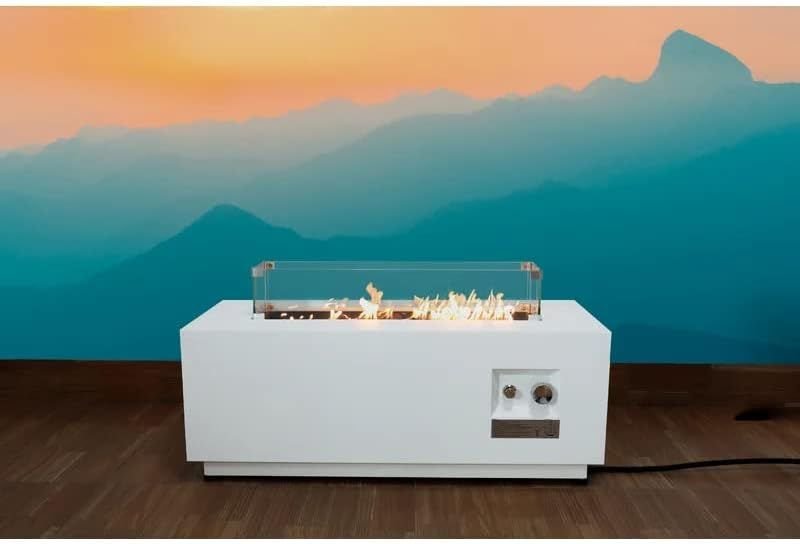 The central fire pit in the center comes with lava rocks and glass fire beads, with an adjustable flame fueled by propane (gas kit sold separately).