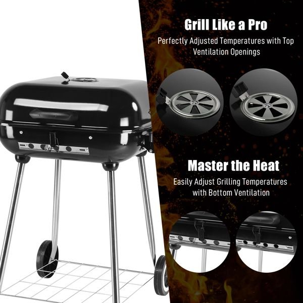 Experience the ultimate grilling pleasure with our 28" Portable Charcoal Grill! Designed to impress even the most discerning grill enthusiasts, this grill is a game-changer for your outdoor cooking adventures. With its extra large size and innovative design, it's the perfect centerpiece for your backyard parties, camping trips, and picnics. The expansive 28-inch cooking grate provides ample space to grill up mouthwatering feasts for all your family and friends, ensuring no one goes hungry. The porcelain-enameled lid and fire bowl ensure heat retention and durability, so you can enjoy perfectly grilled meals every time.