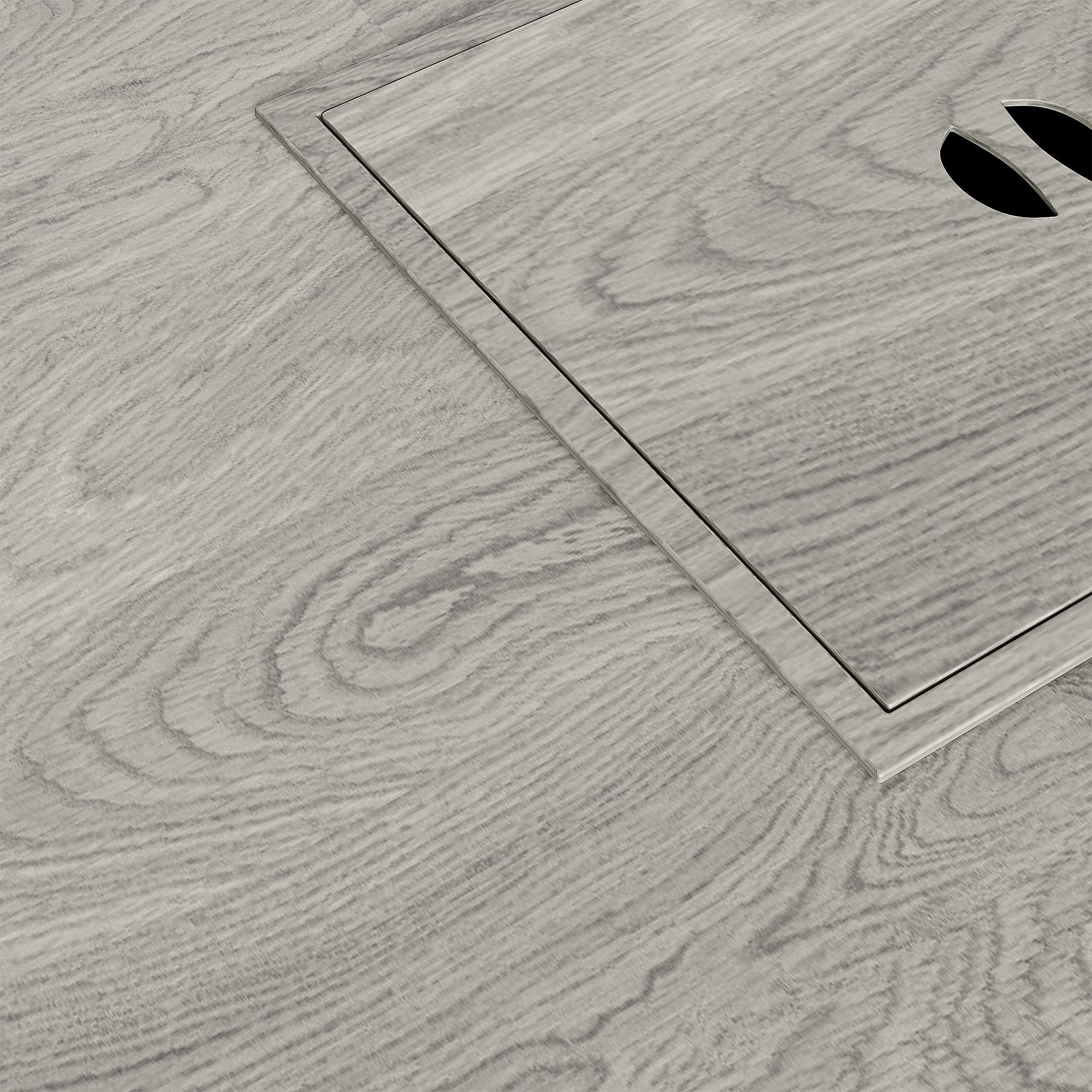 Aluminium table with wood-like grain design ensures durability and aesthetics.