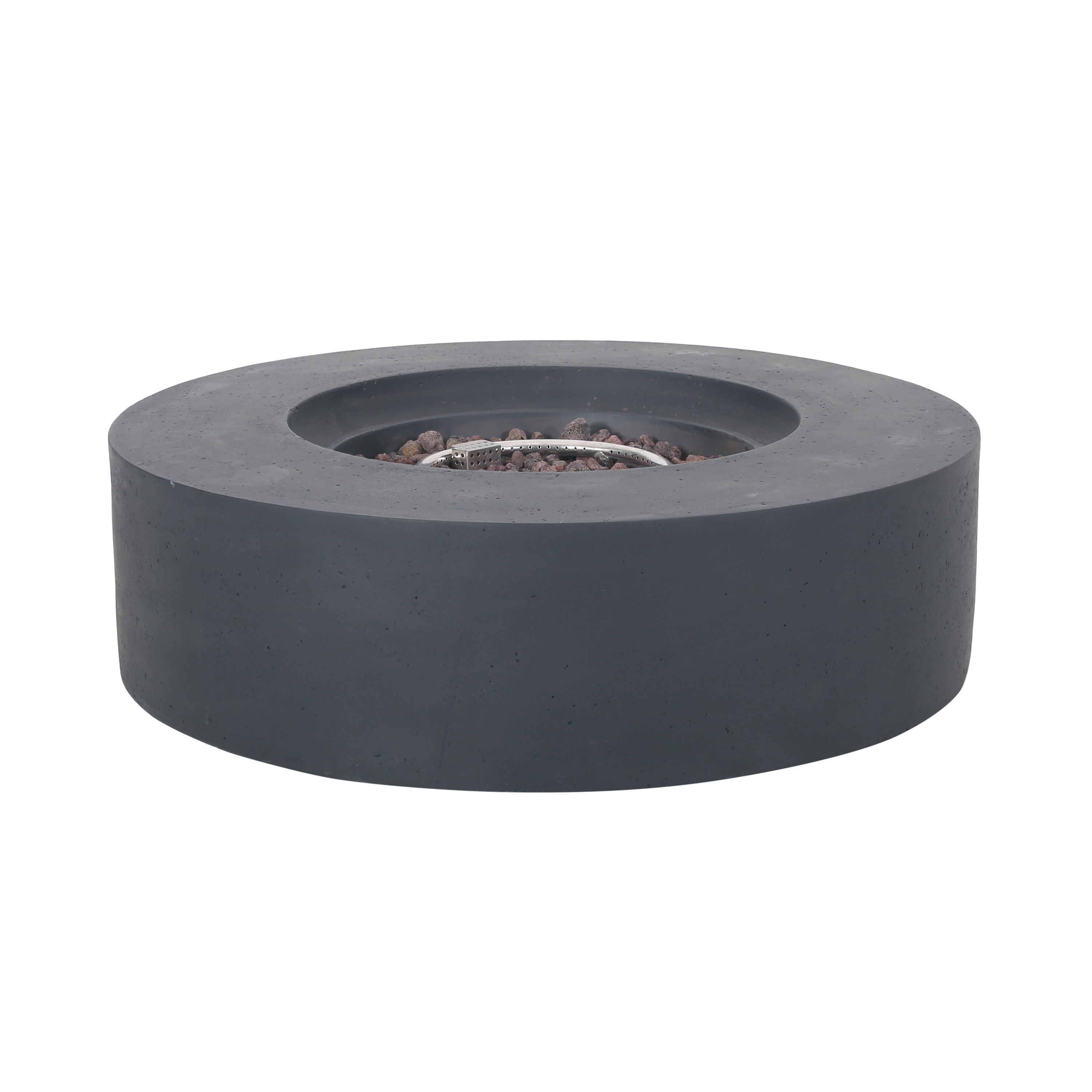 Lightweight Concrete Outdoor Circular Fire Pit, Dark Gray 50,000 BTU (Tank Cover not Included)