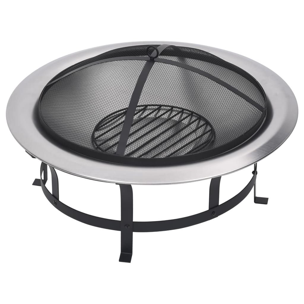 Outdoor Fire Pit with Grill Stainless Steel 29.9"
