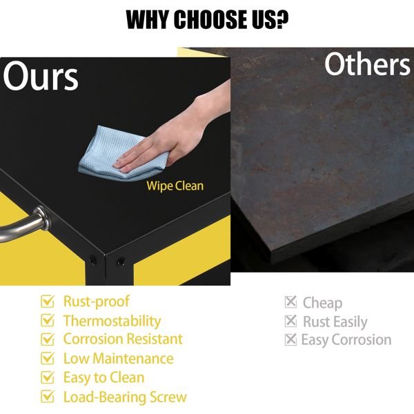 Experience the ultimate convenience in your outdoor cooking setup with this versatile Outdoor Grill Cart. Crafted from robust iron, this multifunctional island worktable is a perfect companion for your grilling sessions, doubling as a food prep cart, serving table, bar cart, and more. Featuring a three-shelf design for ample storage with a rational layout, it can hold a variety of food items, utensils, and tools with easy access. Its rich accessories, including spice rack, trash bag hooks, and tissue hooks, add to its storage capabilities and keep your items organized. With a comfortable handle and two wheels, you can easily move it anywhere you want.