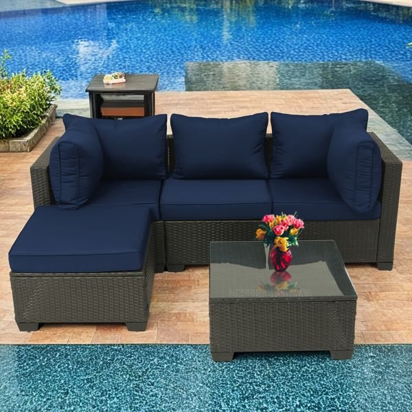 [Easy to assemble]This set of patio furniture features 5 outdoor sectional sofas, including 1 coffee table, 3 middle sectional sofas, and 1 ottoman, and the necessary tools. Simply follow the tutorial for easy installation