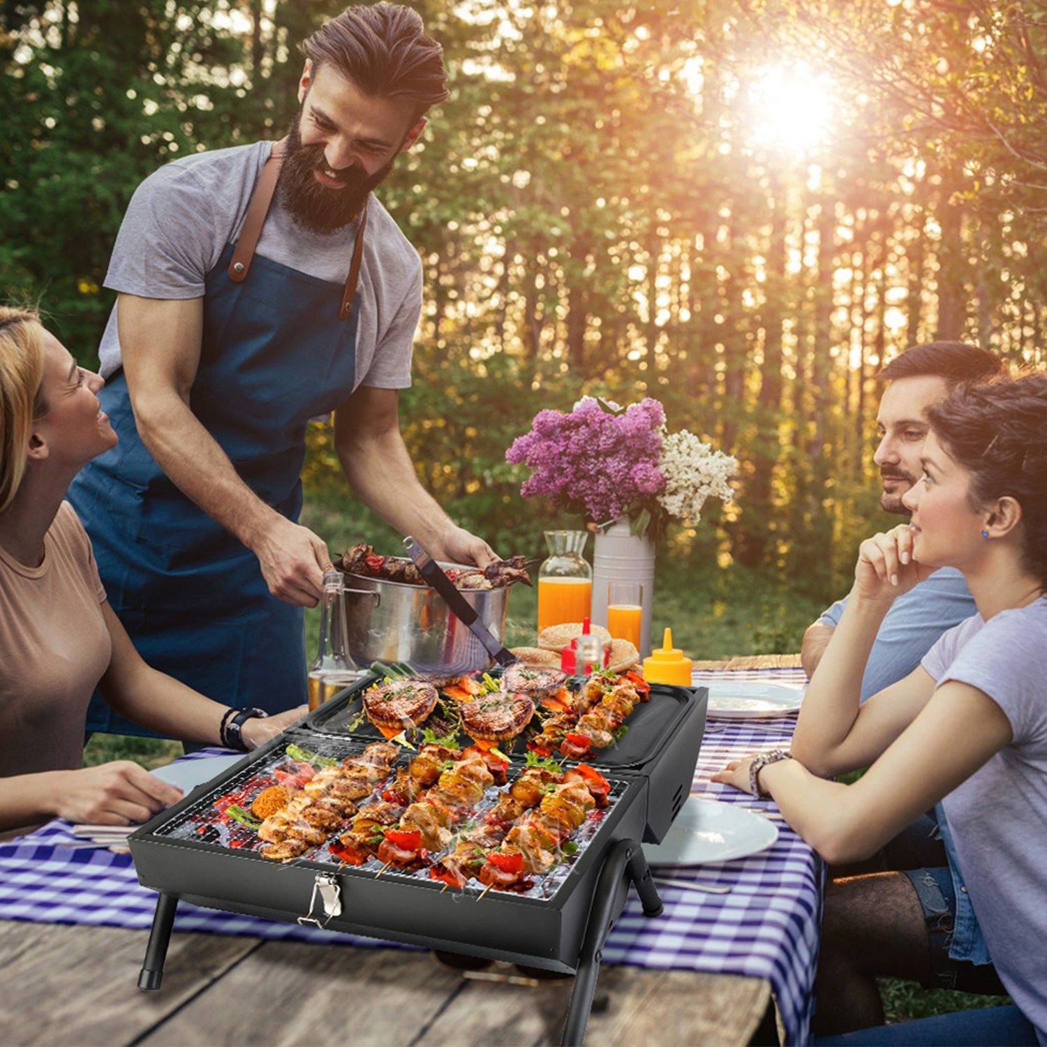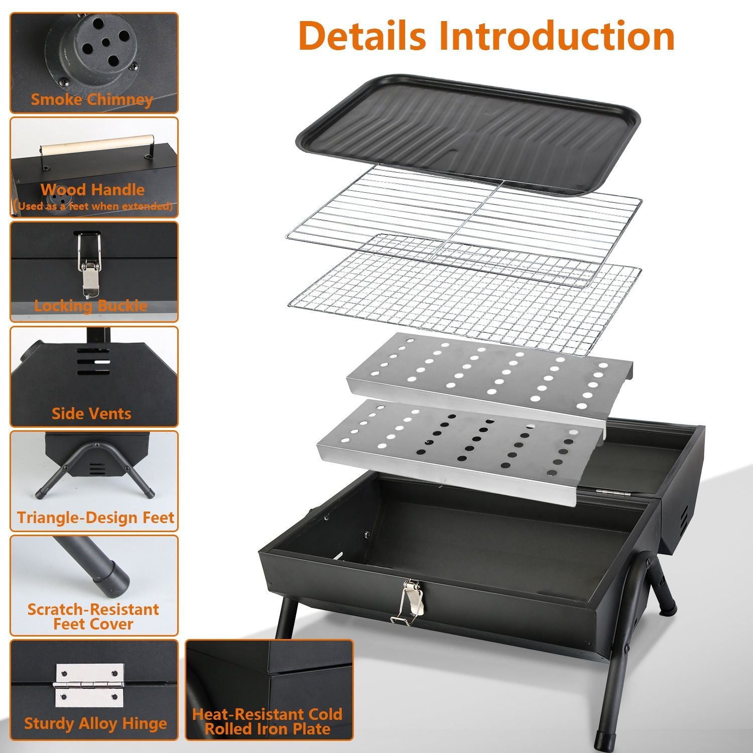 *Portable Outdoor Lightweight Grill*:Easy to fold it up and lock it up and you can carry it with the top wood handle to anywhere you want conveniently. Whether you're camping, picnicking, fishing, hitting the beach, hosting cookouts, embarking on RV trips, or simply grilling in the backyard, this grill has you covered.