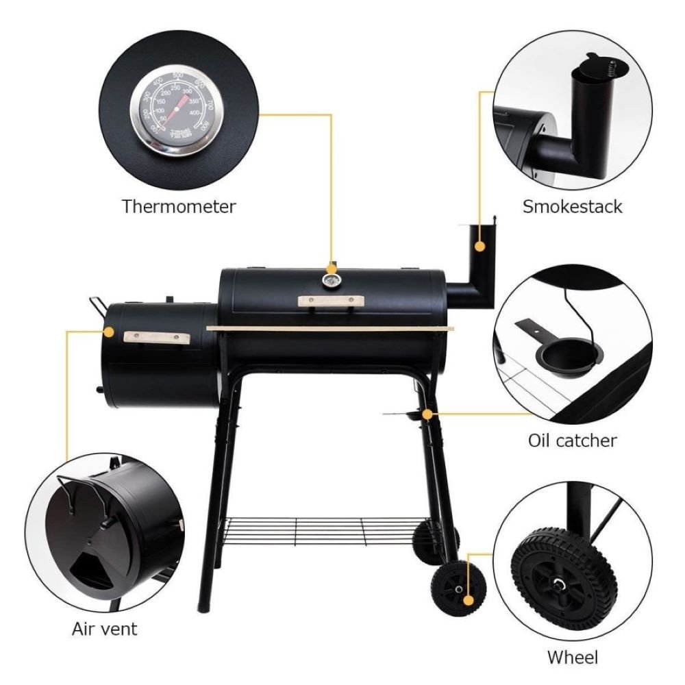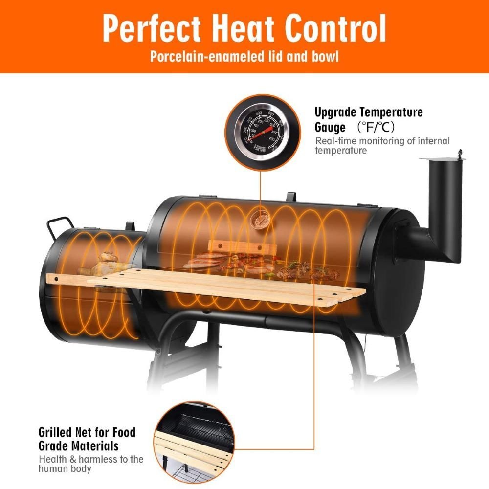1. Seamless connection between side smoker and main chamber help to heat up quickly and keep warming