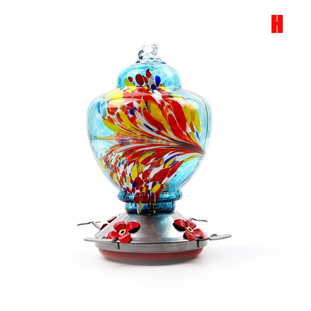Hummingbird Feeder for Outdoors Hand Blown Colorful Glass Feeder with Ant Moat _WK