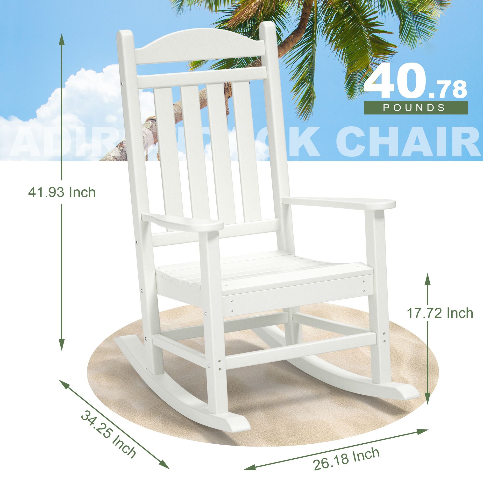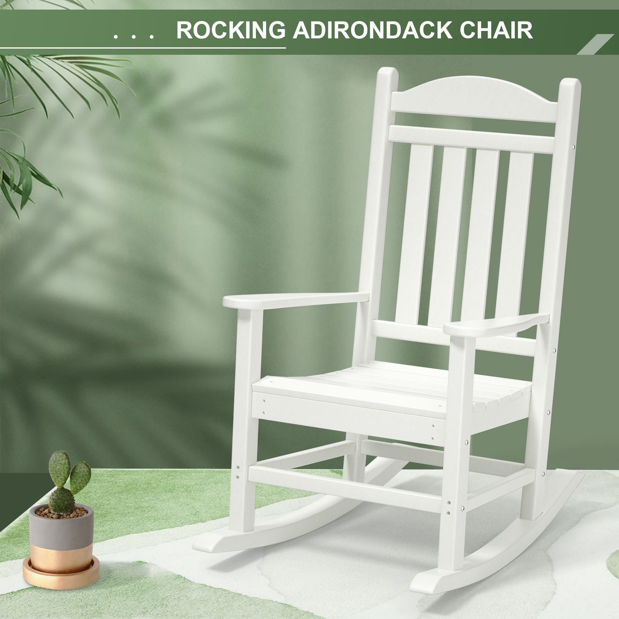1.[All-Weather Resistant HDPE Rocking Chairs] outdoor Rocking Chairs are made with a high-density polyethylene (HDPE). HDPE Lumber is a recyclable and environmentally friendly material. This material has astonishing performance in resistance to all types of weather. They have exceptional resistance to harmful substances, oil and fuels, salt spray, and other environmental stresses and the HDPE chairs do not absorb moisture.