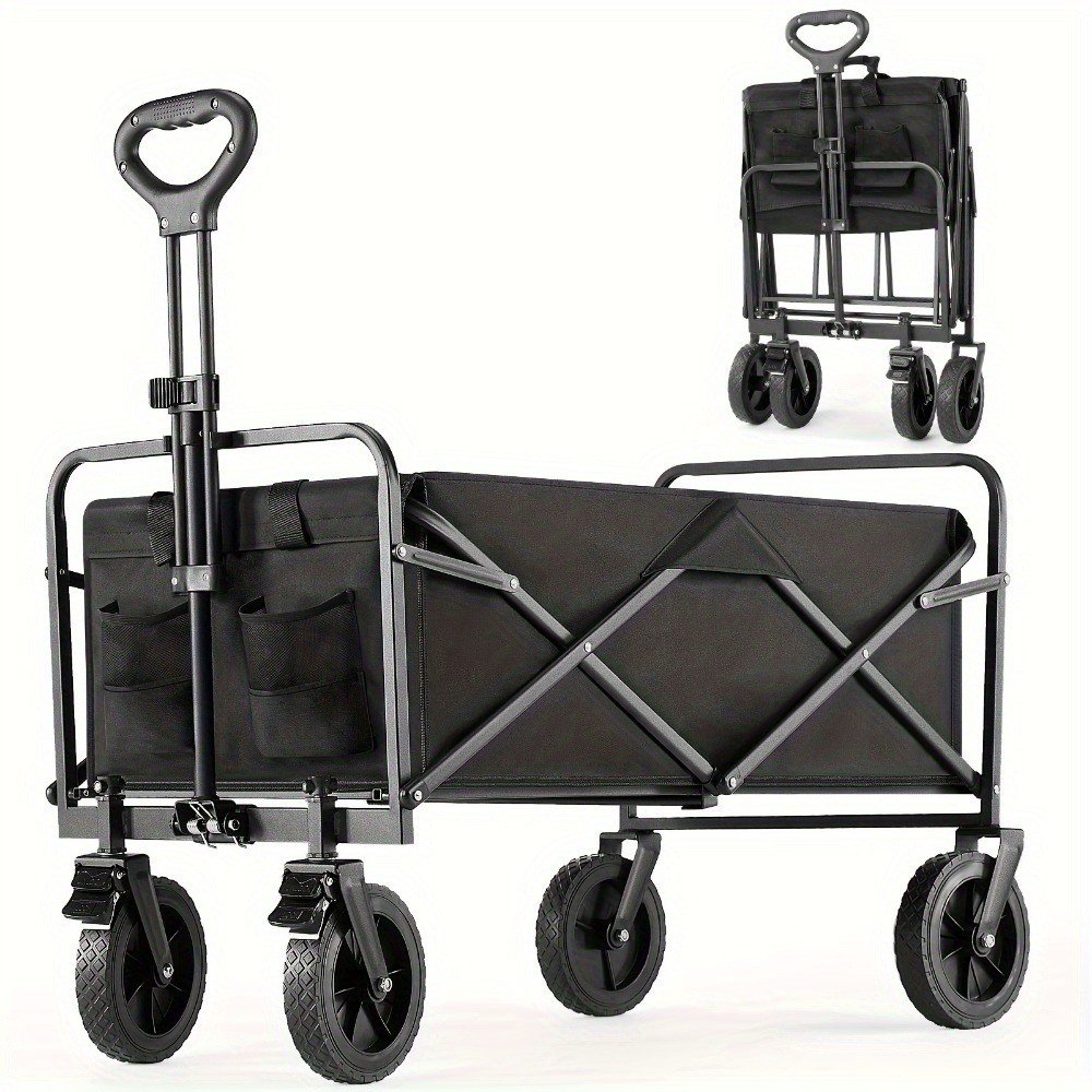1pc Collapsible Foldable Wagon Cart, 220LBS Heavy Duty Utility Garden Cart With All-Terrain Wheels For Beach, Lawn, Sports, Camping, Black, 30"