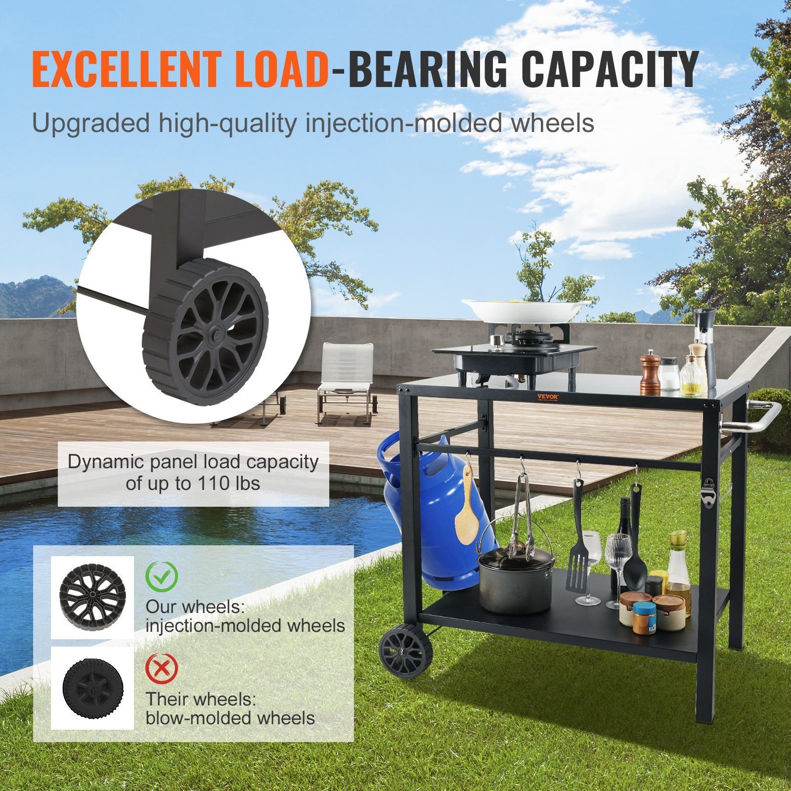 1.Multifunctional BBQ Station: A bbq movable food prep table that can be used both indoors and outdoors. In addition to being used as a barbecue table or pizza oven stand, it can also be used for food preparation, storage, outdoor dining, and more, catering to your various outdoor cooking needs.